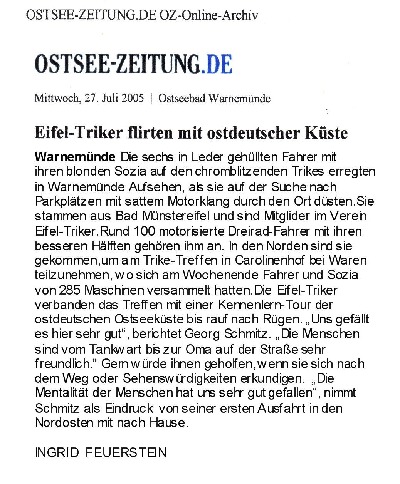 „Ösi“-Triker Picco verlor 1989 bei einem schweren Verkehrsunfall beide Beine. Er ließ den Mut nicht sinken und ist heute ein begeisterter Triker und Schrauber. Foto: Claudia Hoffmann/pp/Agentur ProfiPress„In Österreich gab es damals nur drei Trikes, erinnert er sich jetzt beim Trikertreffen im Kommerner Mühlenpark (Stadt Mechernich) im Gespräch mit der Kommerner Journalistin Claudia Hoffmann. Die Medienfrau schreibt nachher im „Kölner Stadt-Anzeiger“: „Mit seiner Begeisterung für das entspannte „Cruisen“ - die 210 km/h auf dem Tacho fährt er nur selten aus - hat Picco 2006 später auch seine Ehefrau Katrin angesteckt.“ Die wusste vorher gar nicht, was ein Trike überhaupt ist. Heute fährt sie am liebsten selbst.